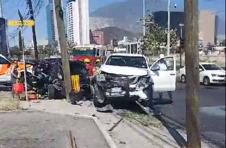 Un accidente vial sucedió la mañana de este domingo en Monterrey, en el que dos personas resultaron lesionadas.