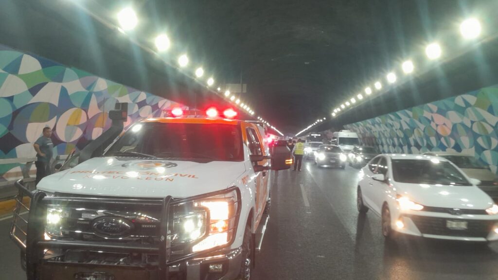 Monterrey, N.L.– La tarde de este viernes se registró un accidente vehicular en el Túnel de la Loma Larga, a la altura de Venustiano Carranza y 2 de Abril, en la colonia Nuevas Colonias de Monterrey.