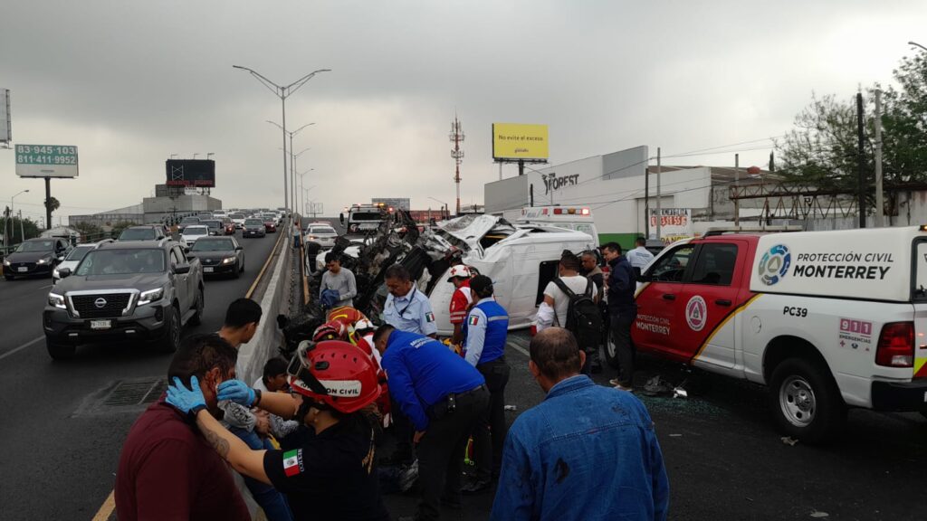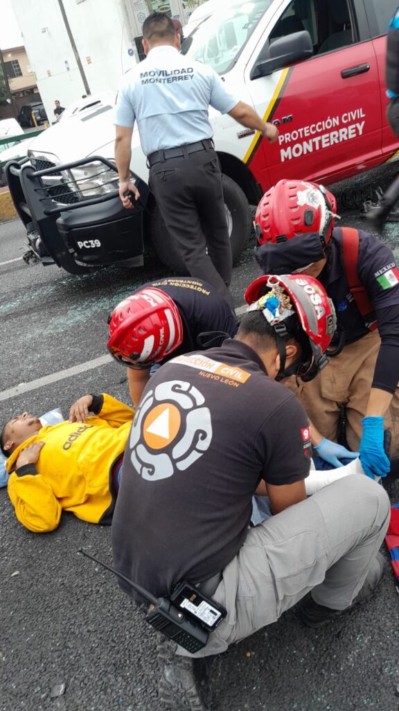 En el accidente, Protección Civil municipal trabajó en un derrame el cual se controló con material absorbente. Tránsito de Monterrey abanderó el lugar, pues la vialidad se vio afectada en circulación hacia San Nicolás.