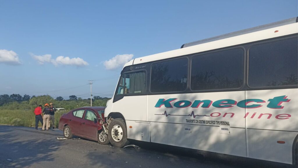 El percance ocurrió alrededor de las 16:18 horas e involucró a un transporte de personal y a un automóvil particular. Elementos de Protección Civil de Nuevo León, a bordo de la unidad U-02, acudieron al lugar para brindar auxilio a los afectados.