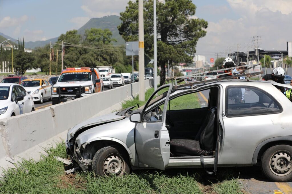 De acuerdo con el reporte oficial, el automóvil se estrelló contra un muro y posteriormente volcó. Elementos de Protección Civil Nuevo León acudieron al lugar para brindar la atención correspondiente.