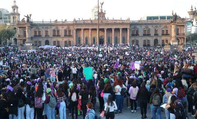 La marcha del 8 de Marzo, para conmemorar el Día Internacional de la Mujer, que transcurría pacíficamente en Monterrey, fue reventada por grupos de mujeres vestidas de negro y encapuchadas, quienes irrumpieron violentamente, destruyeron vidrios en los bajos del Condominio Acero, pintarrajearon el edificio Kalos, agredieron a representantes de los medios de comunicación e incendiaron las puertas frontales del Palacio de Gobierno.