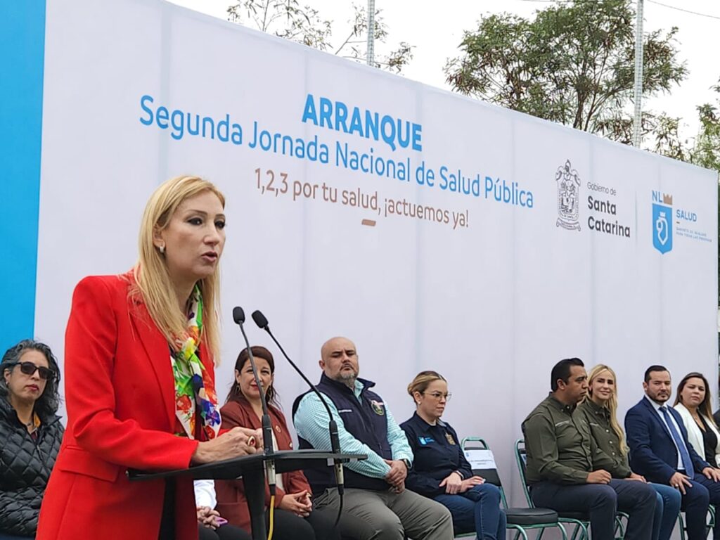 Alma Rosa Marroquín, secretaria de Salud de Nuevo León, fue la encargada de dar inicio a la Segunda Jornada Nacional de Salud Pública, contando con Jesús Nava, alcalde de Santa Catarina, como anfitrión.