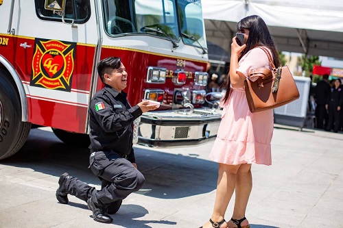 Durante el 44 aniversario del Día del Bombero, un elemento de la Academia de Bomberos de Guadalupe sorprendió a su