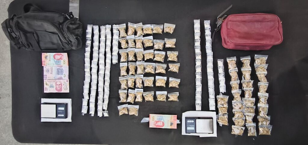 Al intentar abordarlos, los sujetos emprendieron la huida, siendo alcanzados en el cruce con Crispín Treviño. Se identificaron como Eliam «N», de 20 años, y Walter «N», de 19. En su poder les encontraron 65 envoltorios con supuesta marihuana y 99 dosis de una sustancia similar al cristal.