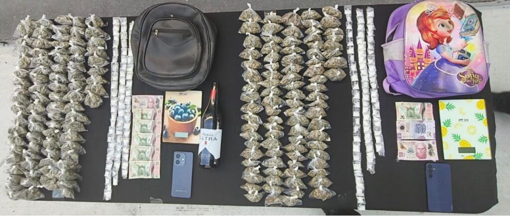 Los detenidos fueron identificados como Esmeralda «N», de 28 años, y Adán «N», de 38. A ellos se les aseguraron 175 envoltorios con presunta marihuana y 137 dosis de la sustancia conocida como cristal.