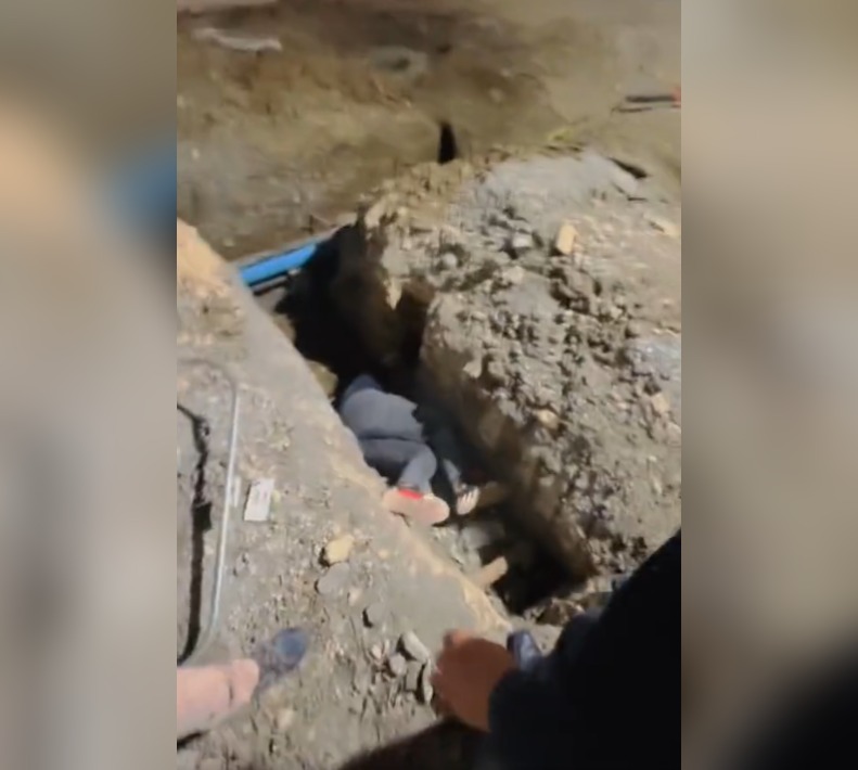 Pese a que el joven no mostró una lesión de gravedad, este quedó débil tras la caída permaneció sentado a un costado de la zanja por unos minutos.