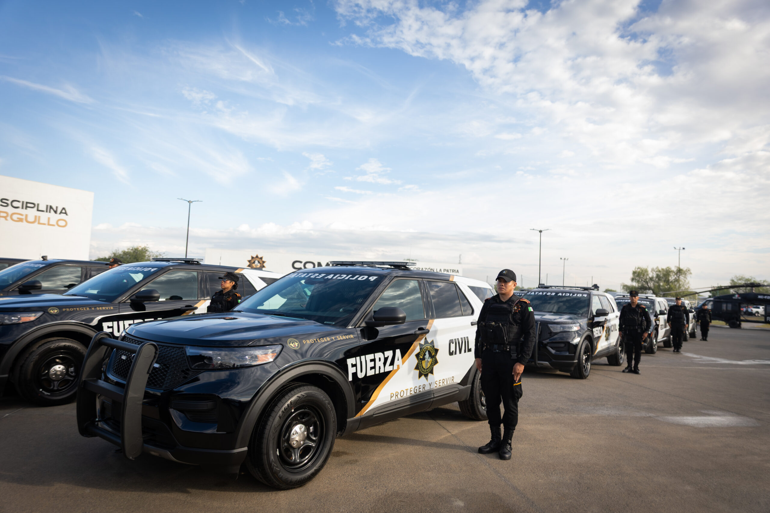 El evento se realizó en el Campo Policial 1, donde el Gobernador Samuel García Sepúlveda encabezó la ceremonia de graduación de los cadetes y la entrega de 200 patrullas nuevas, entre ellas camionetas Explorer Police Interceptor modelo 2025 y unidades Durango completamente equipadas para labores tácticas.