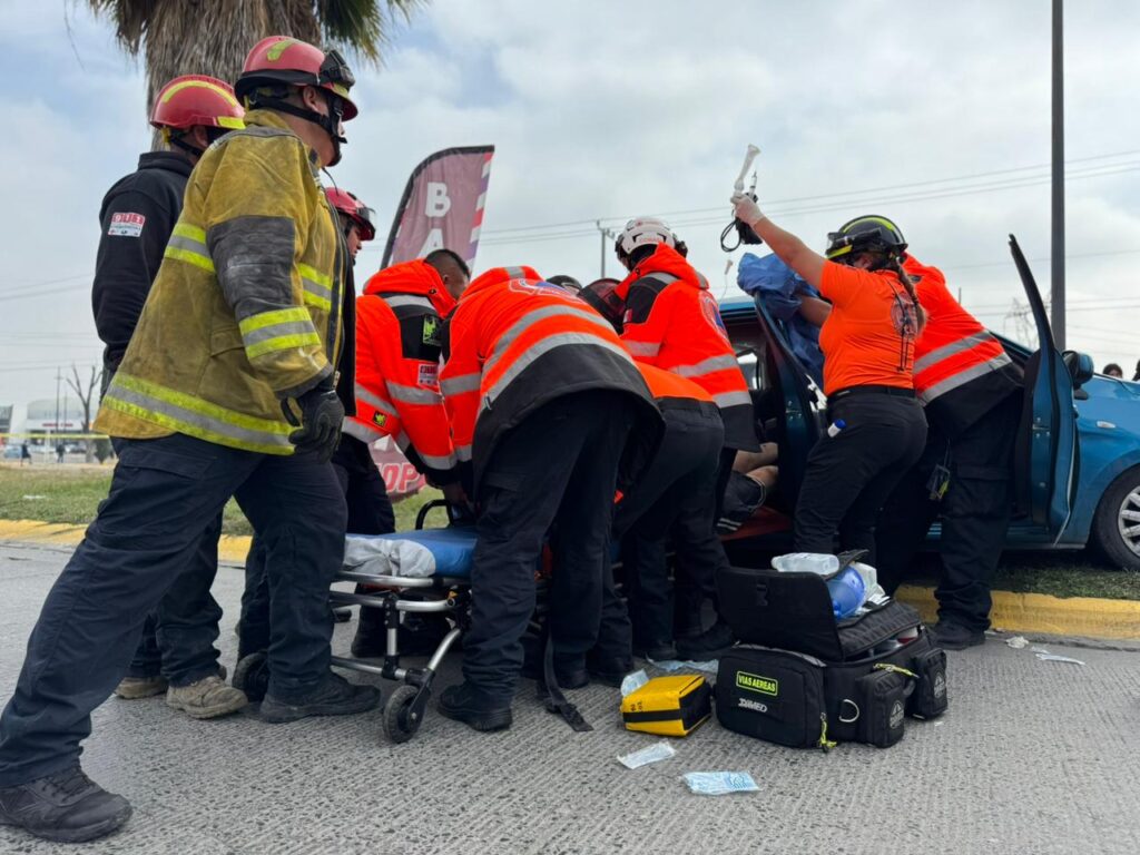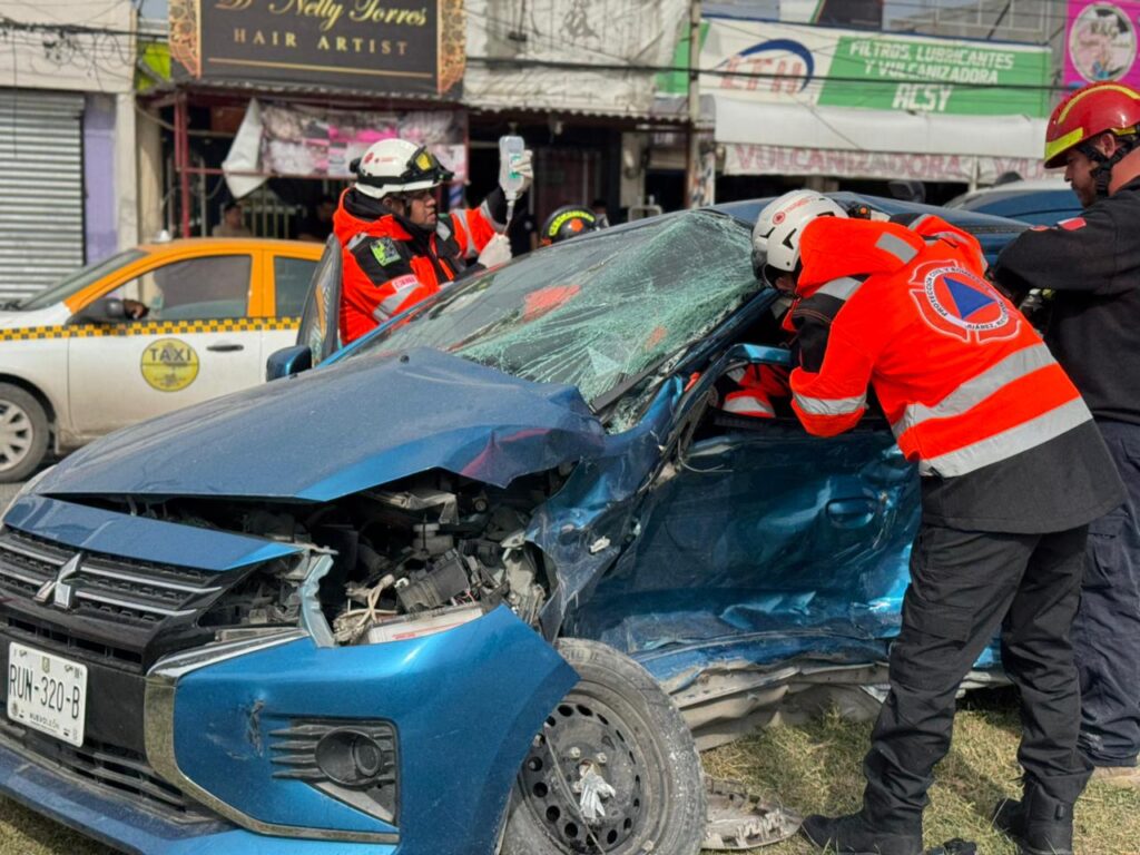 Según los primeros reportes, un vehículo impactó de manera que una persona quedó atrapada entre los hierros, por lo que los rescatistas tuvieron que realizar maniobras para liberarla. Tras ser rescatado, el lesionado fue trasladado de inmediato a un hospital local, donde recibe atención médica.