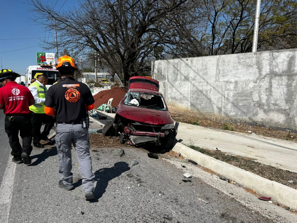 El reporte fue emitido a las 13:11 horas, cuando Protección Civil de Nuevo León confirmó la volcadura de un vehículo compacto. De acuerdo con los primeros informes, la conductora de una camioneta Chevrolet color rojo, con placas TFE-865-B, habría comenzado a sentirse mareada mientras circulaba por el carril central.