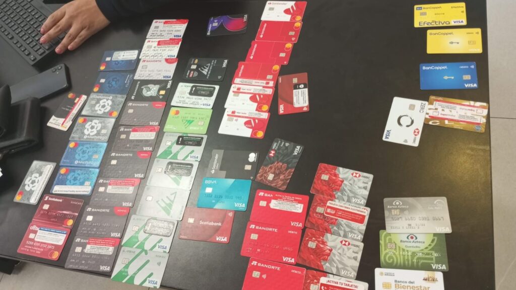 Policías de San Nicolás detuvieron a un hombre a quien le fue decomisado un total de 55 tarjetas bancarias y una terminal de prepago.