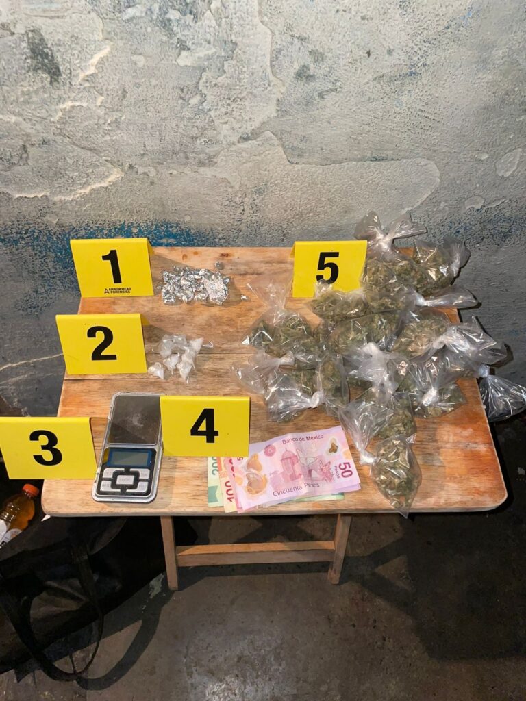 Dentro de los decomisados, se confiscó también una báscula digital en color gris, así como varios billetes de distintas denominaciones.