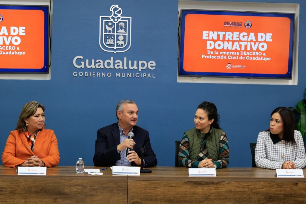 Con el objetivo de fortalecer las labores que diariamente realiza en favor de la seguridad de la población, la Dirección de Protección Civil de Guadalupe recibió un donativo económico de 200 mil pesos por parte de la empresa DeAcero, recurso que será destinado tanto a tareas operativas como administrativas de la corporación.