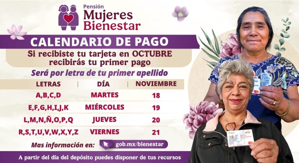 Ciudad de México.— Las mujeres de entre 60 y 64 años que se incorporaron en agosto a la Pensión Mujeres Bienestar comenzarán a recibir, por primera vez, su apoyo económico de 3 mil pesos bimestrales a partir del 18 de noviembre. La Secretaría de Bienestar confirmó que la entrega se realizará de manera escalonada y conforme a la inicial del primer apellido.