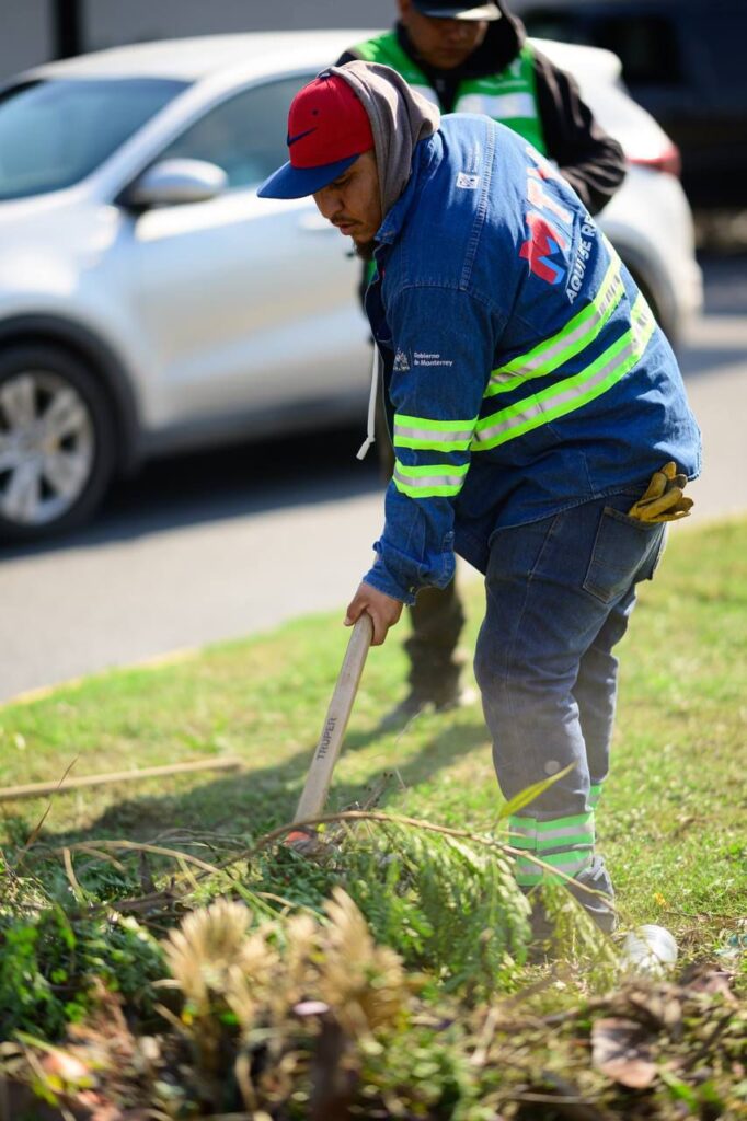 En total, 35 trabajadores municipales participaron en la jornada, distribuidos estratégicamente para atender vialidades, camellones y espacios públicos, como parte de los programas permanentes de mantenimiento urbano que el municipio mantiene activos en diferentes zonas de Monterrey.