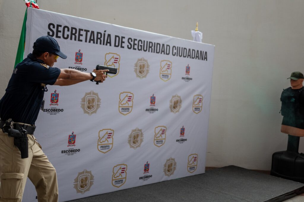 Escobedo, N.L. — En un esfuerzo por modernizar sus estrategias de seguridad y proteger a la ciudadanía, el municipio de Escobedo entregó este martes 45 armas no letales “S2” a los elementos de la Secretaría de Seguridad Ciudadana. La ceremonia se llevó a cabo en el Patio Central de la Presidencia Municipal, con la presencia del Alcalde Andrés Mijes y el Secretario de Seguridad Ciudadana, Marco Antonio Zavala.