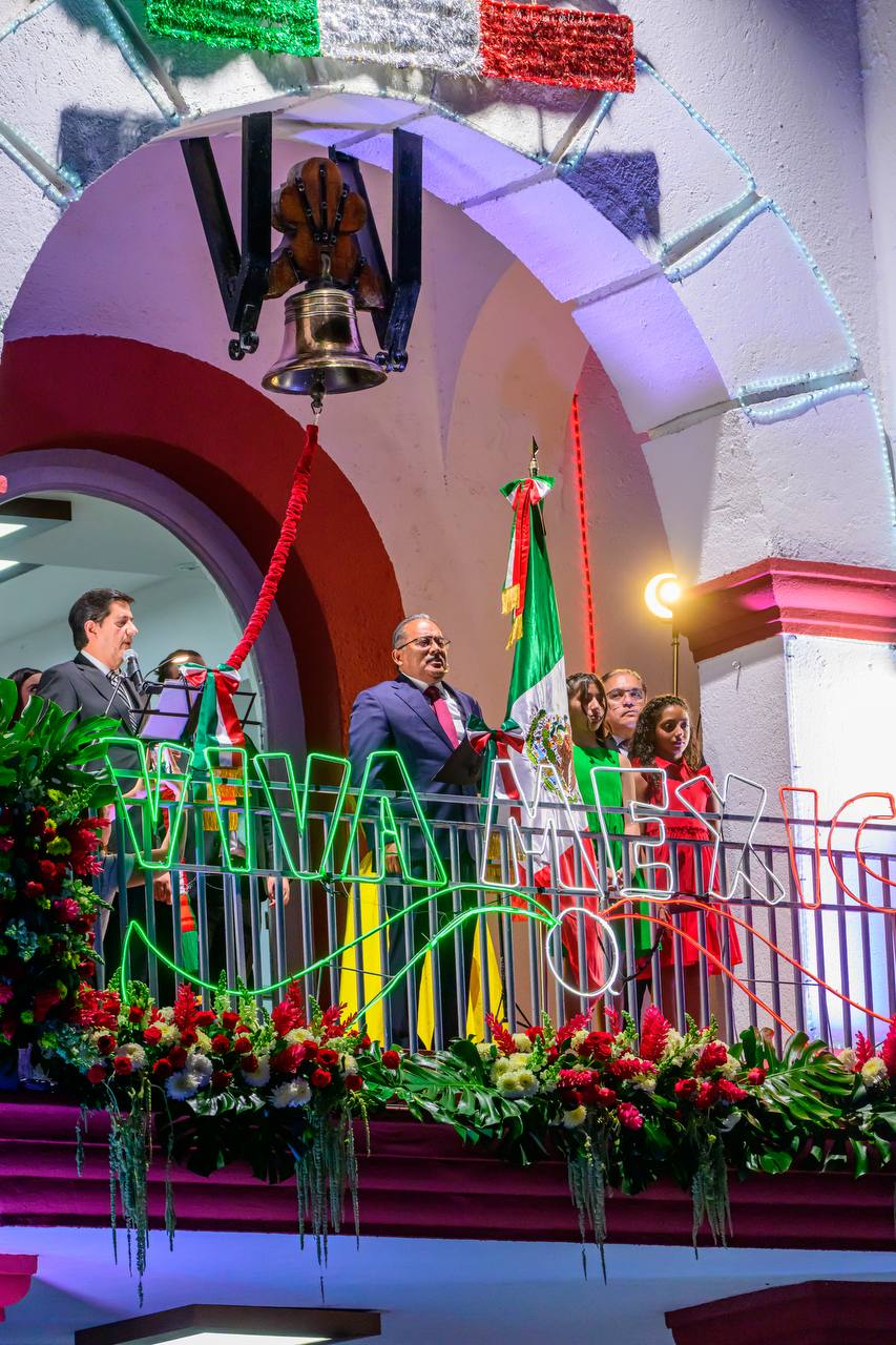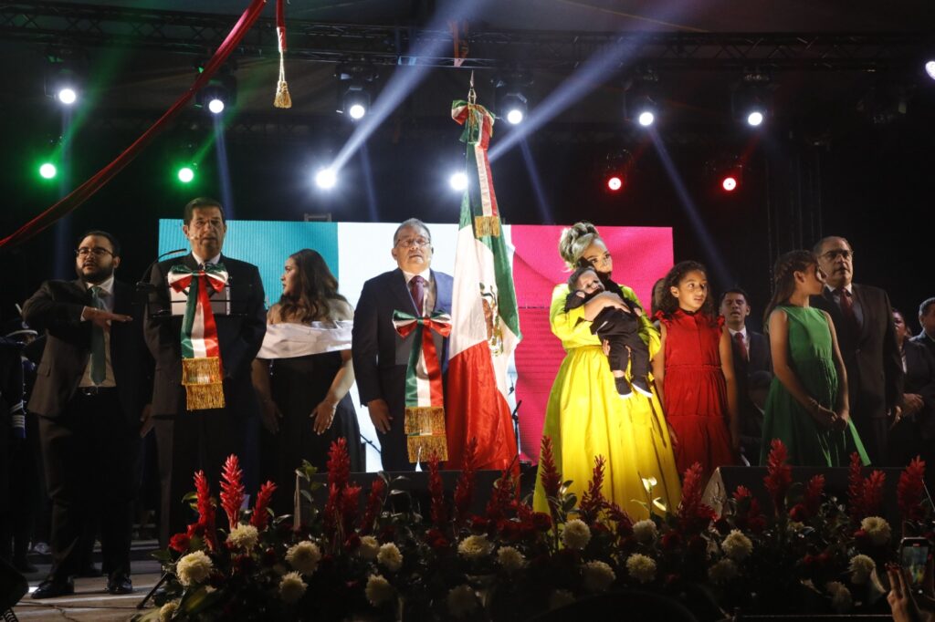 Al caer la oscuridad, la Plaza Principal se encontraba abarrotada. En lo alto del balcón, el alcalde Andrés Mijes, acompañado de su esposa Yesica Torres de Mijes e hijos, se preparaba para uno de los momentos más emotivos: el tradicional Grito de Independencia.