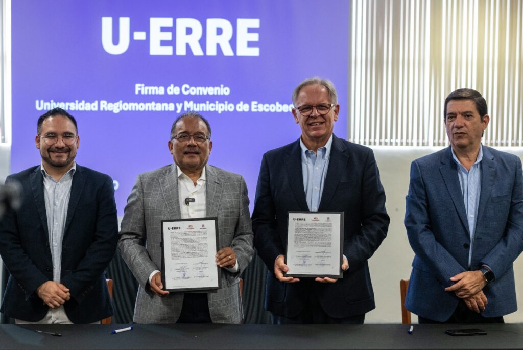 Escobedo, NL.– El municipio de Escobedo y la Universidad Regiomontana (U-ERRE) formalizaron este martes un convenio de colaboración que busca profesionalizar a los servidores públicos y fortalecer el diseño de políticas públicas en beneficio tanto de la ciudad como de todo Nuevo León.