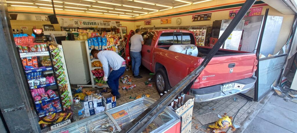 El percance ocurrió la mañana de este jueves en la avenida República Mexicana, en la colonia Misión Anáhuac, en donde aparentemente la conductora olvidó colocar el freno antes de ingresar al local.
