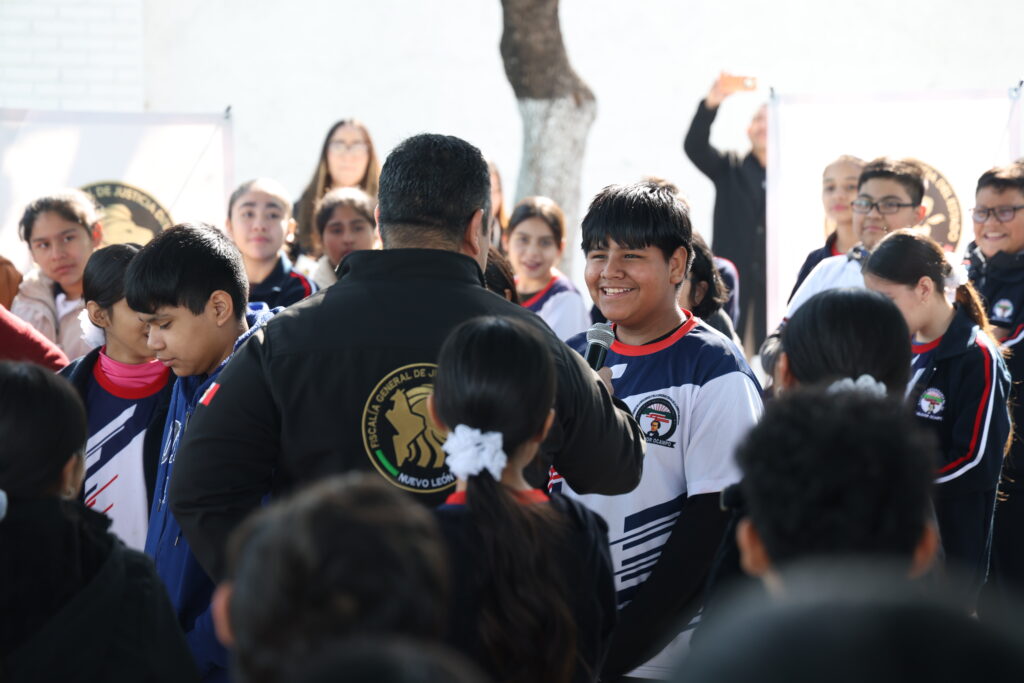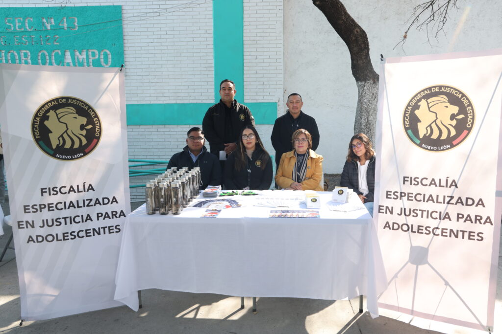 Estudiantes de la Secundaria 43 “Melchor Ocampo” recibieron información preventiva durante la “Jornada por la Paz: Prevención de Ciberacoso y Adicciones”, en la que participaron corporaciones de seguridad y diversas dependencias de atención social, entre ellas la Fiscalía Especializada en Justicia para Adolescentes de Nuevo León.