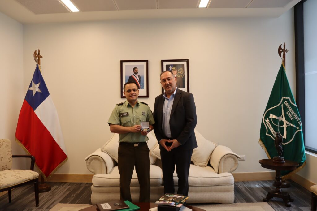 Encabezada por José Luis David Kuri, titular de la Secretaría, la delegación sampetrina fue recibida en Santiago por el área de Relaciones Internacionales de la reconocida corporación chilena, con 98 años de trayectoria en seguridad pública, disciplina institucional y formación policial de excelencia.