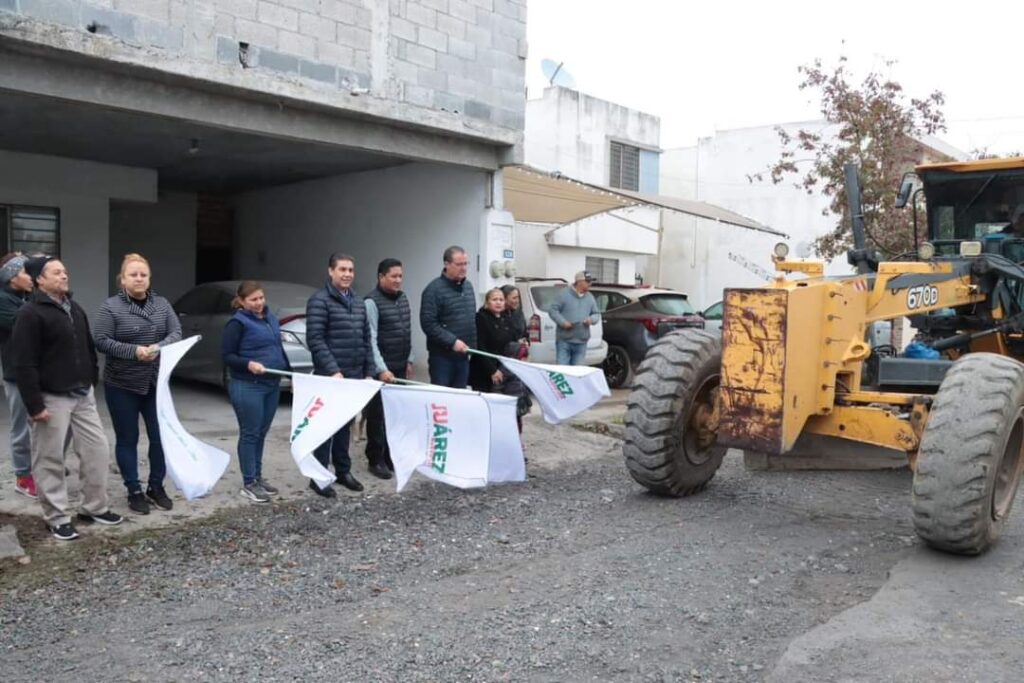Autoridades del municipio de Juárez dieron este miércoles el banderazo de arranque a las labores de recarpeteo en calles de las colonias Fraccionamiento San Juan y la Colonia Los Valles Segundo Sector.