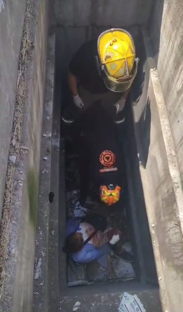 Elementos de Protección Civil de Nuevo León acudieron de inmediato para brindar atención médica y realizar la extracción mediante un sistema de tripié. Tras el rescate, la mujer fue trasladada al Hospital ISSSTE Constitución con golpes en la cabeza, contusión en el brazo derecho y lesión en la pierna izquierda.