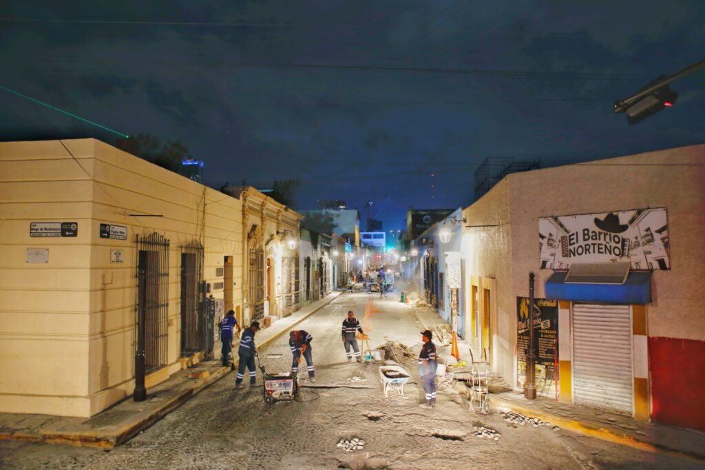 Las labores de rehabilitación vial del Ayuntamiento regiomontano alcanzaron esta semana el Barrio Antiguo, donde se atendieron más de 200 metros cuadrados de superficie dañada en calles de este sector turístico, dentro de las acciones del programa Barrio Bonito.