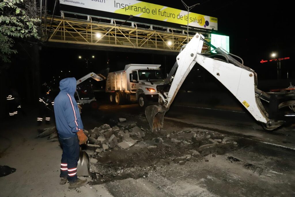 De forma paralela, personal de Servicios Públicos realizó trabajos de mantenimiento en la lateral de la avenida Díaz Ordaz, a lo largo del trayecto que va del Puente Atirantado a la calzada Mauricio Fernández Garza, en la colonia Santa María.