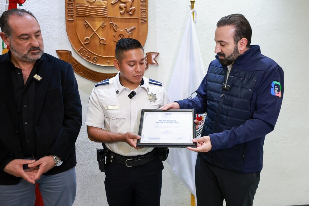Este lunes, el Municipio de San Pedro Garza García reconoció su heroica labor durante una ceremonia encabezada por el Alcalde Mauricio Farah Giacomán. “Mario demostró un gran compromiso con la seguridad de los ciudadanos, actuando con rapidez y valor para salvar vidas”, destacó el Alcalde al entregar el reconocimiento.