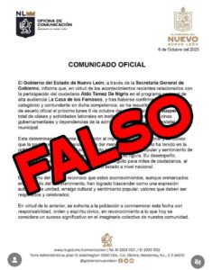 6 de octubre de 2025 El Gobierno de Nuevo León aclaró que es falso el comunicado que circula en redes...