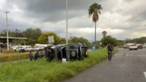 19 de septiembre de 2025 Allende, N.L. - Una patrulla de Fuerza Civil volcó en la carretera nacional a la...