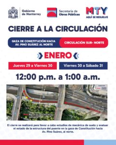 29 de enero de 2026 El municipio de Monterrey anunció el cierre temporal de la gaza que conecta los carriles...