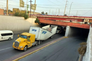 Un tráiler quedó atorado la mañana de este sábado en un paso a desnivel en el municipio de Monterrey. El...