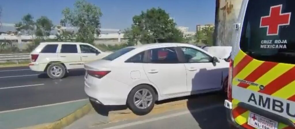 Elementos de Protección Civil de Nuevo León acudieron al sitio tras recibir el aviso a las 12:26 horas. A su arribo, confirmaron que un automóvil Aveo blanco, modelo 2025, con placas TAC824B, se encontraba involucrado en el percance.