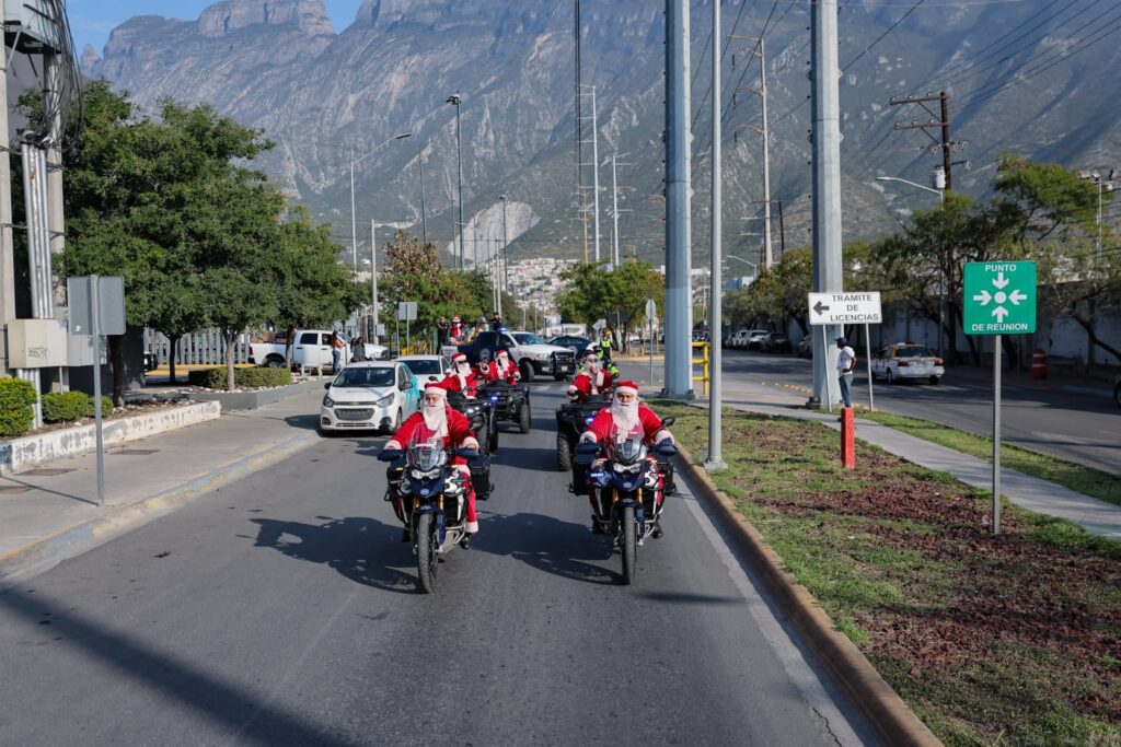 En un ambiente navideño y de cercanía con la comunidad, policías municipales y de Tránsito de San Pedro Garza García realizaron un recorrido especial por distintas colonias del municipio para entregar juguetes y alimentos a niñas, niños y sus familias, como parte de las actividades previas a la celebración de la Nochebuena.