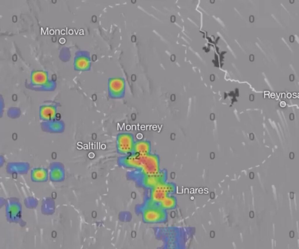 Monterrey, N.L., 11 de agosto de 2025. — Protección Civil de Nuevo León informó que un canal de baja presión sobre la Mesa del Norte y la Mesa Central, en interacción con una vaguada en altura que se extenderá del noreste al occidente del país, y combinado con la entrada de humedad proveniente del Golfo de México, provocará lluvias puntuales muy fuertes en la entidad.