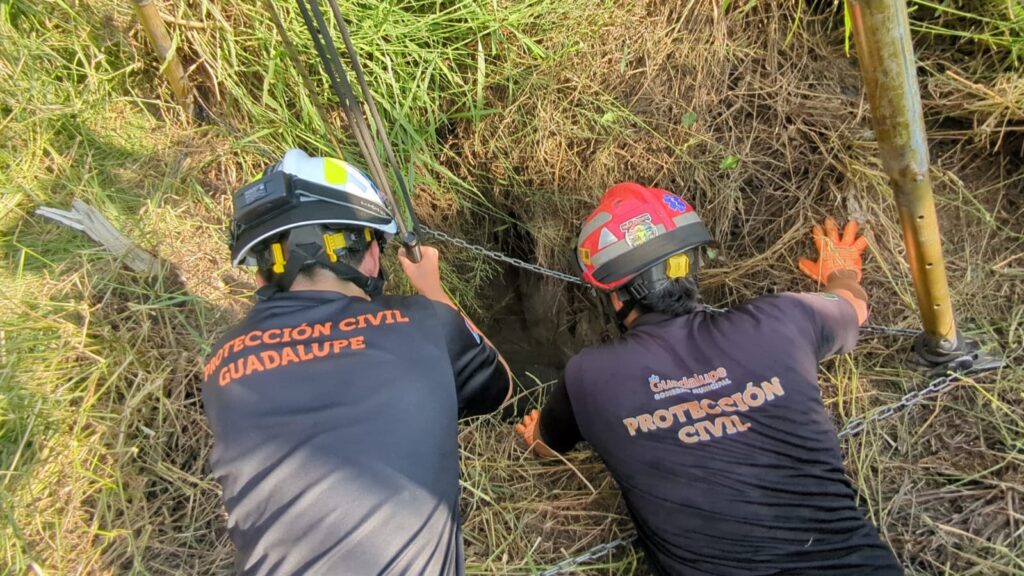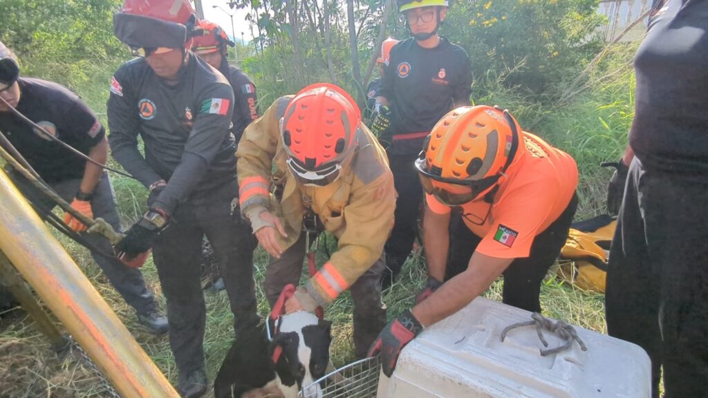 Vecinos de la Colonia Chula Vista alertaron a la corporación sobre ladridos provenientes de un terreno baldío desde la madrugada del domingo. Sin embargo, no fue sino hasta este lunes que se percataron de que los sonidos provenían de una noria, por lo que solicitaron apoyo inmediato.