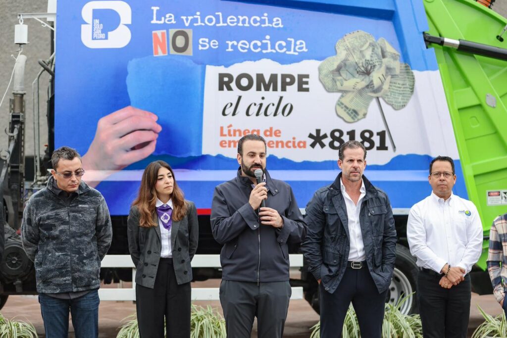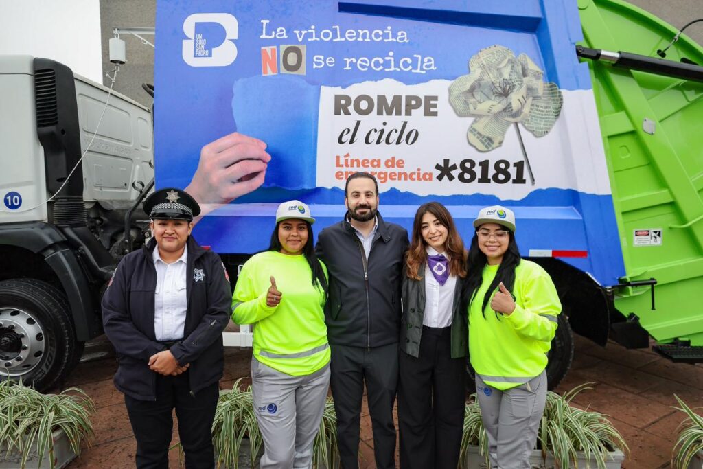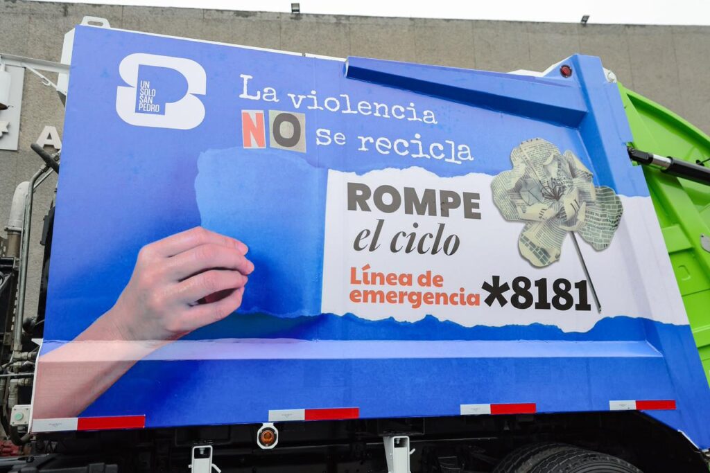 En una acción conjunta para reforzar la prevención de la violencia contra las mujeres, el Municipio de San Pedro Garza García y la empresa Red Ambiental presentaron la campaña “La violencia no se recicla”, que circulará por las calles durante las próximas semanas a través de unidades de recolección de basura.