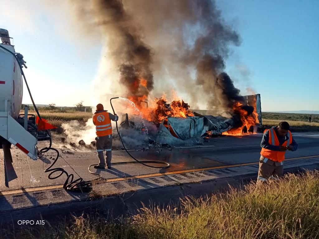 Acude unidad al reporte del incendio de un tráiler no reportan lesionados.
