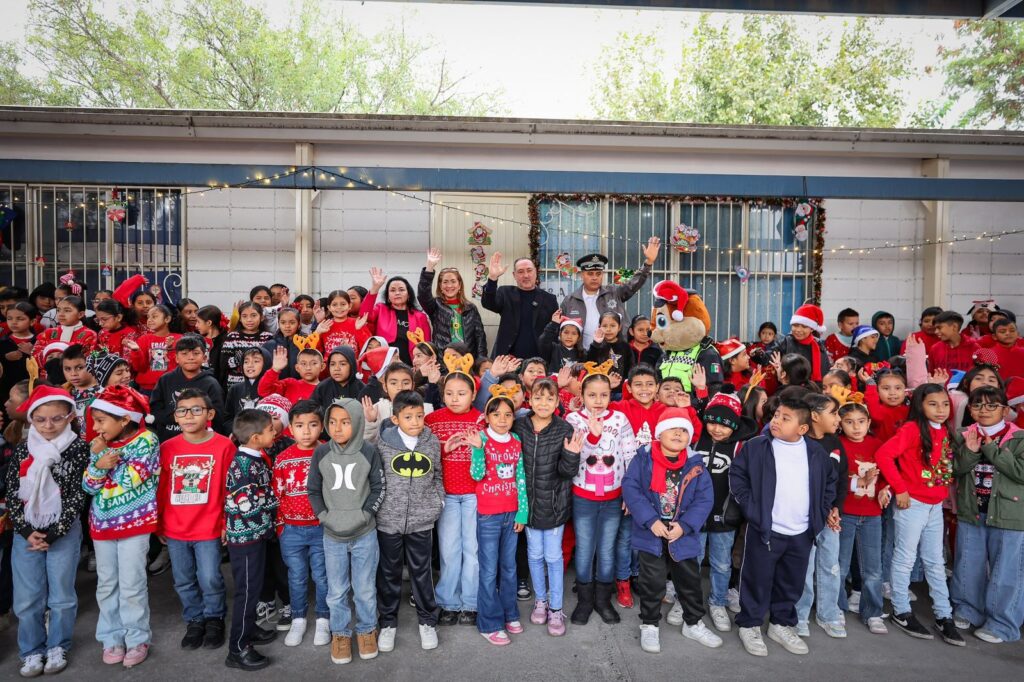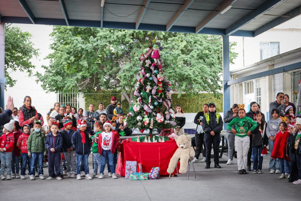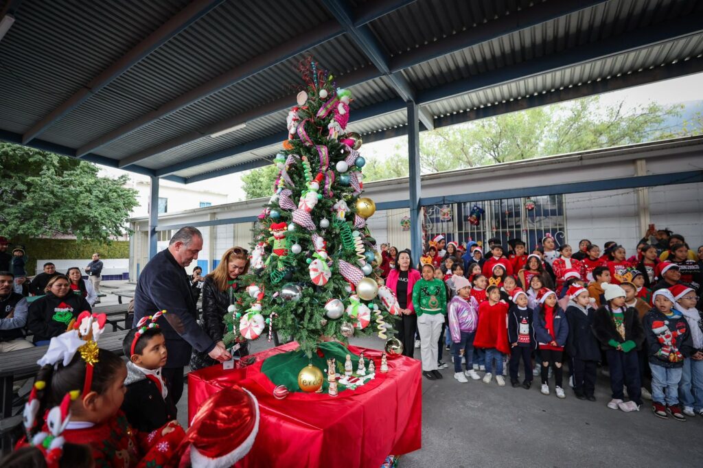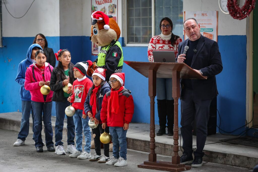 La Secretaría de Seguridad Pública de San Pedro llevó la magia decembrina a la primaria Francisco González Bocanegra, en la colonia Los Pinos, donde este martes se realizó el encendido de su árbol navideño, un acto que por primera vez se efectúa de manera oficial en el plantel.