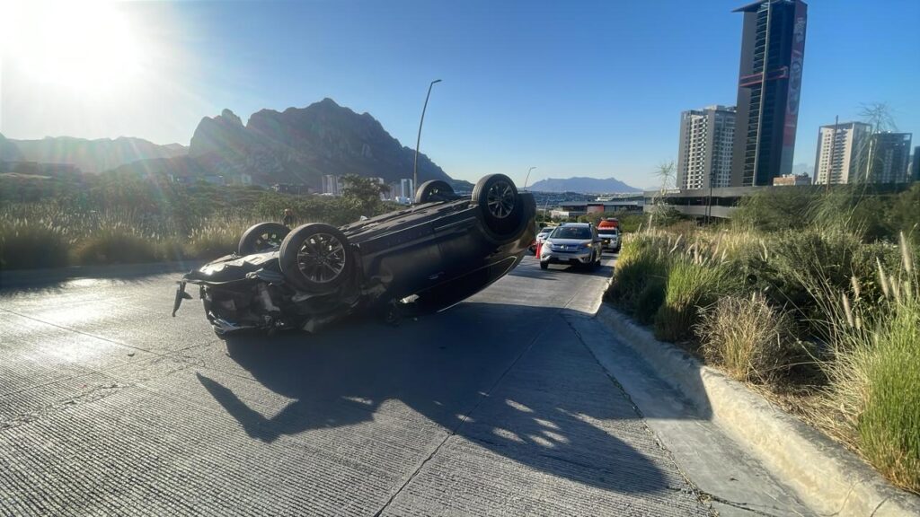 La tarde de este lunes se registró un accidente vial tipo volcadura sobre la avenida Alfonso Reyes y Eje Exterior, en la colonia Vía Cordillera del municipio de Santa Catarina, Nuevo León.