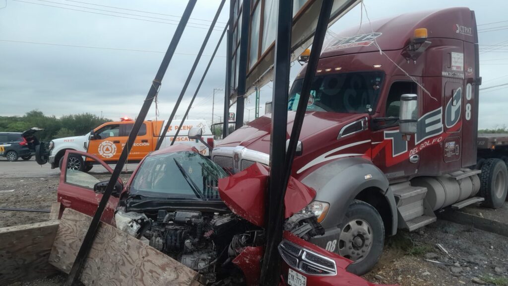 De acuerdo con información de Protección Civil de Nuevo León, el reporte se recibió a las 08:23 horas y señalaba la presencia de personas atrapadas dentro de un vehículo particular tras el impacto con un tráiler. El percance ocurrió en la avenida Santa Isabel, a la altura del camino a Los Remates.