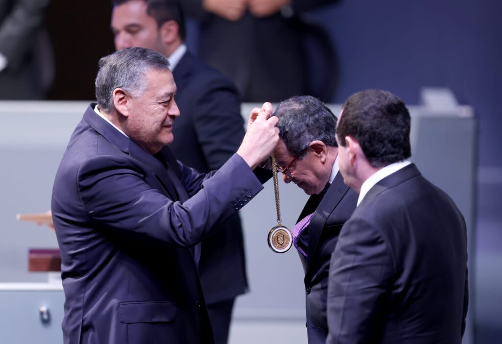 En representación del sector médico, Escobedo Villarreal agradeció el reconocimiento y dedicó la distinción a quienes han contribuido a su trayectoria. Recordó que en 1992 encabezó el primer trasplante hepático en adulto en Nuevo León —el segundo del país— y un año después realizó el primer trasplante hepático de donador vivo en México. “Recibo esta medalla con humildad y con la convicción de seguir trabajando por una medicina más humana, más justa y más cercana”, manifestó.