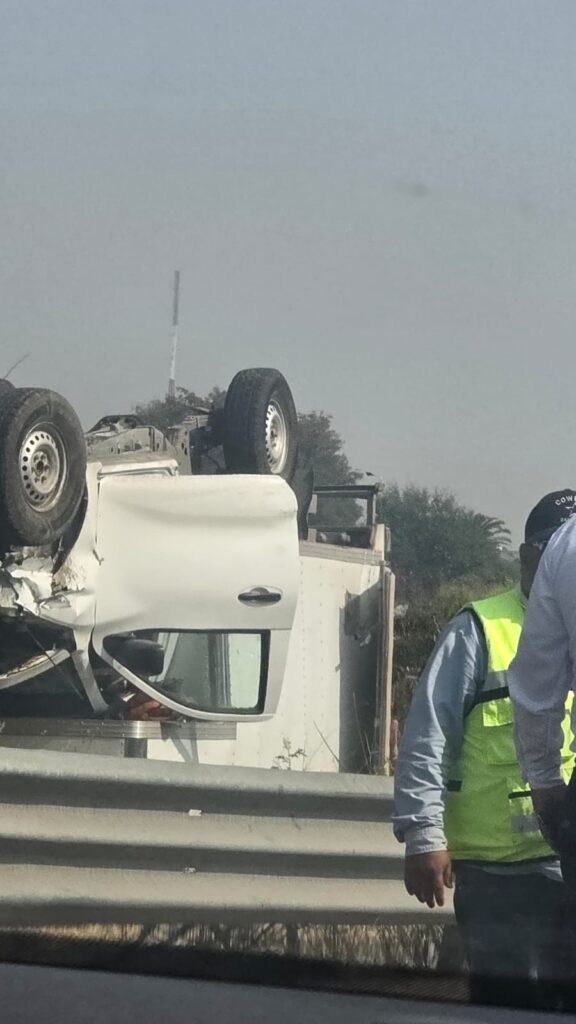 El percance consistió en la volcadura de una camioneta, situación que movilizó de inmediato a los cuerpos de emergencia. Tras revisar la zona y evaluar a los tripulantes, las autoridades confirmaron que no hubo personas lesionadas.